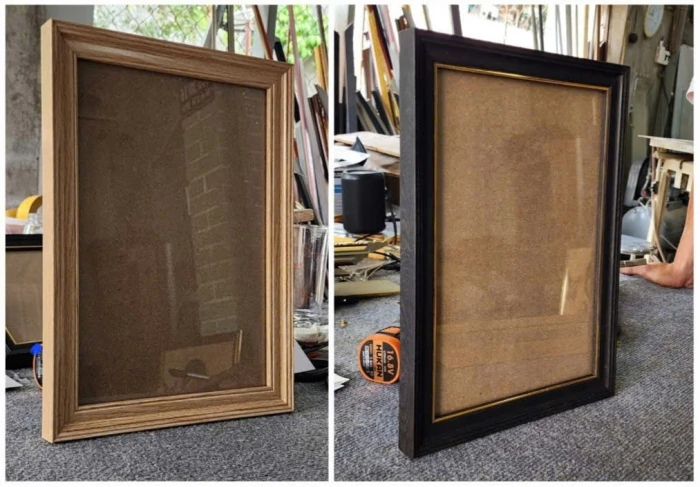 Khung gỗ: được làm từ gỗ tự nhiên hoặc gỗ nhân tạo. Chúng có thể có nhiều kiểu dáng và hoa văn khác nhau, từ đơn giản đến phức tạp, để phù hợp với mọi không gian trang trí.
