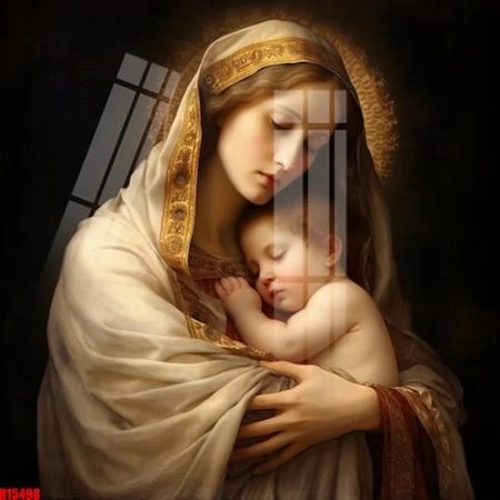 Mô tả Đức mẹ đang bế ẵm đức Chúa một cách đầy tình cảm thương yêu. Đức mẹ luôn bảo vệ, che chở cho đức Chúa bé bỏng. Ý nghĩa ấm áp, gia đình luôn được chở che, các thế hệ thành viên gắn bó lẫn nhau.